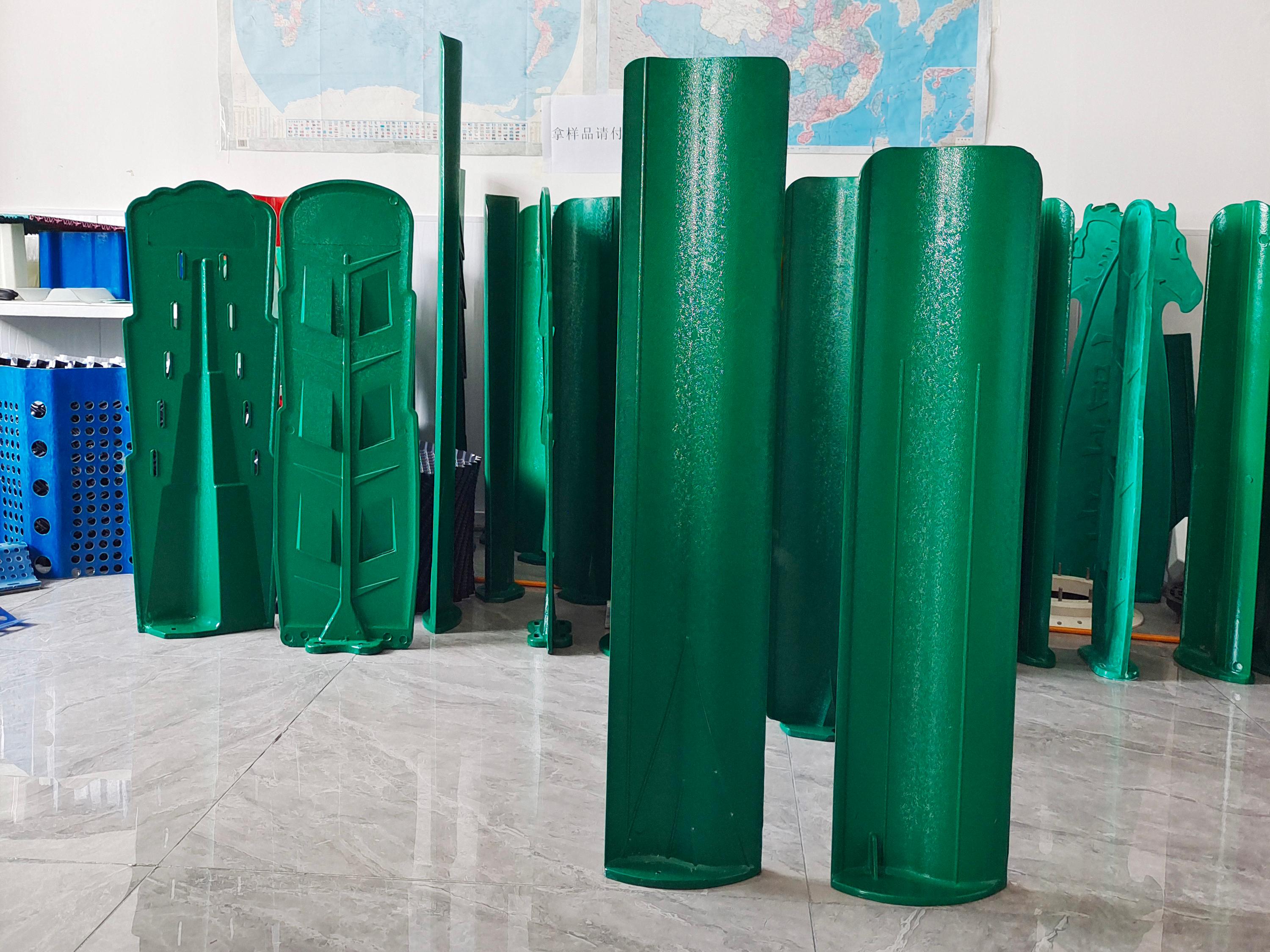 玻璃钢防眩板是一种用于道路交通安全的功能性设施,安装于公路中央分隔带或路侧,通过物理遮挡和光线折射原理,减弱对向车辆前照灯强光对驾驶员的眩目干扰,提升夜间行车安全。其主体材料为玻璃纤维增强复合材料(GFRP),由玻璃纤维与树脂(如不饱和聚酯树脂、环氧树脂)复合而成,具有轻质高强、耐腐蚀、易成型等特性。