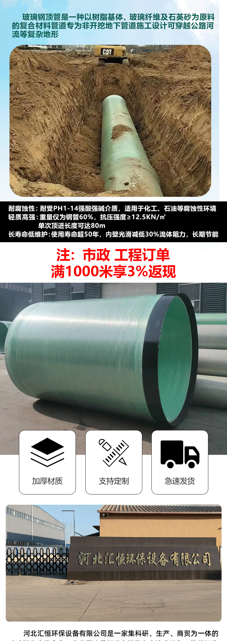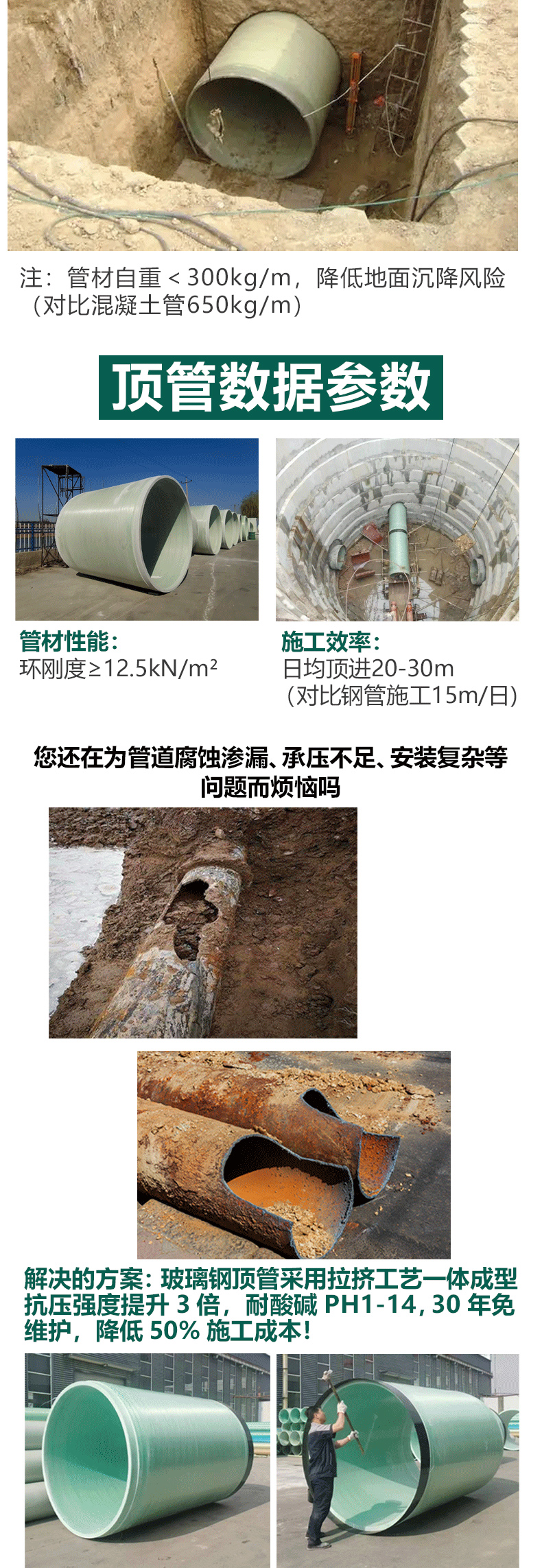 应用:广泛应用于城市给排水、电力电缆保护、化工介质输送等领域,尤其适合非开挖顶管施工场景。