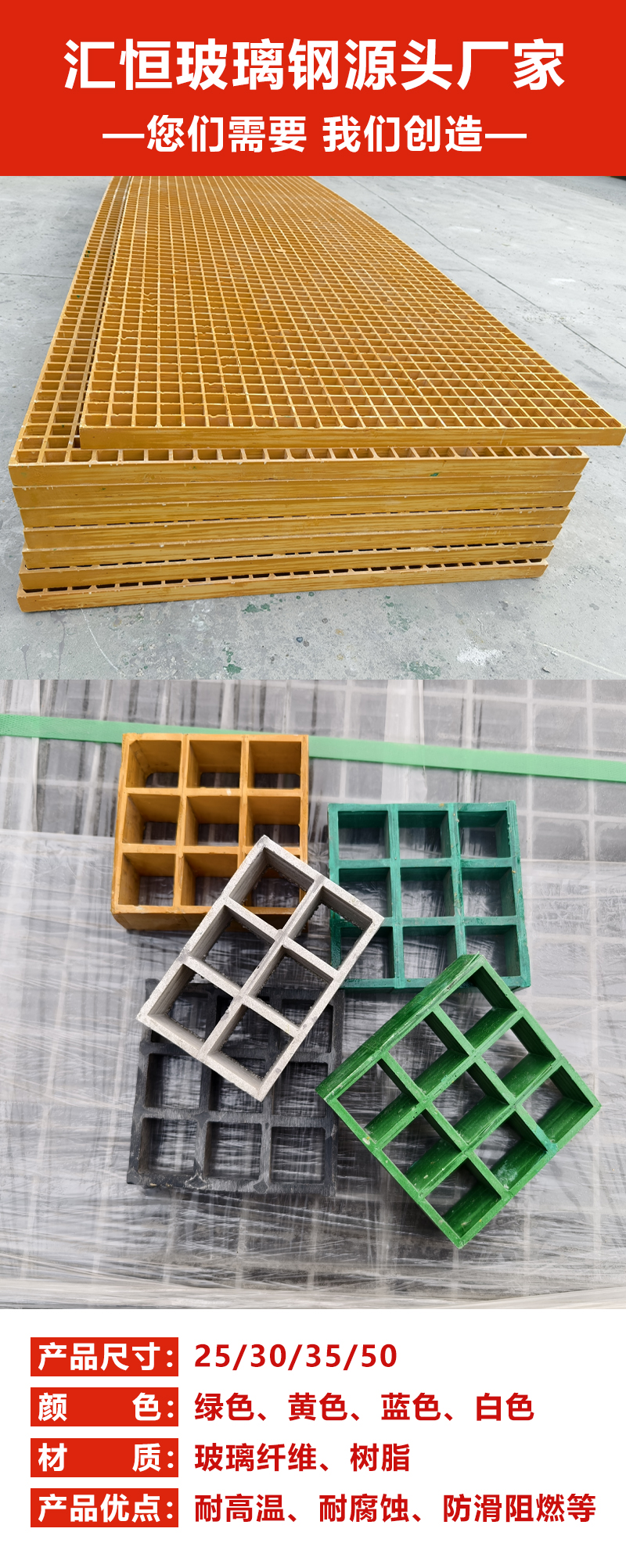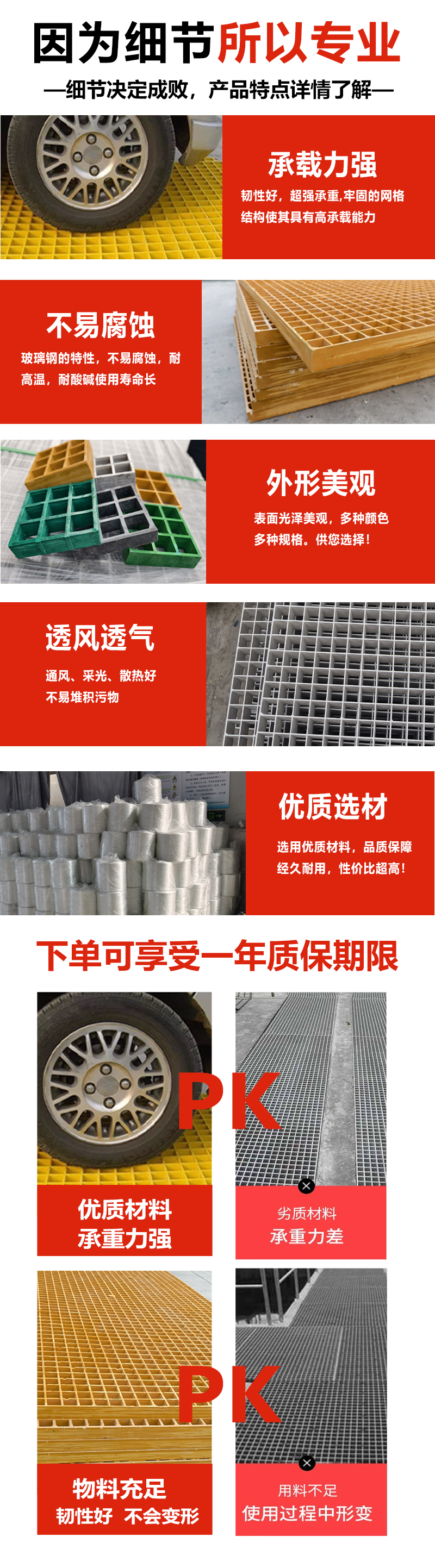 特点:耐腐抗蚀、防滑耐磨,承重稳固、轻质高强,安装便捷、维护省心,使用寿命长,适配多行业户外及恶劣环境使用。