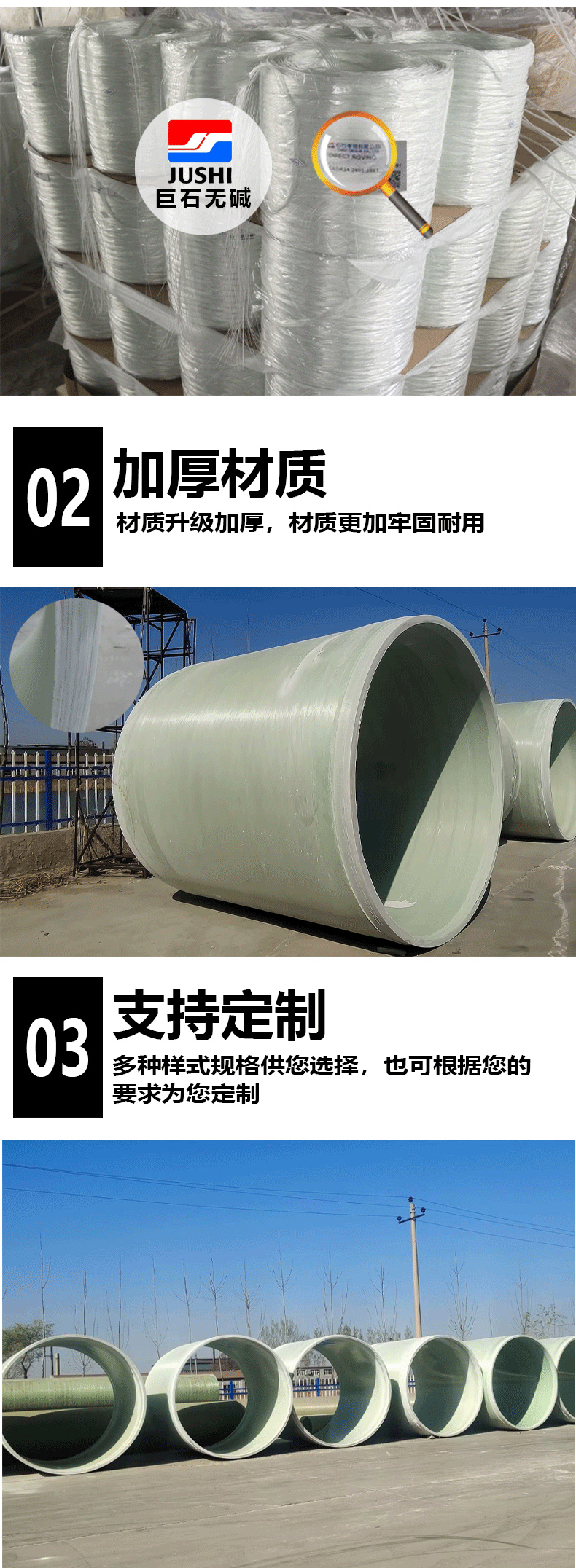 特点:施工快、运输便捷,采用玻璃钢材质,耐腐蚀、强度高,适用于各类市政、工业管道工程。