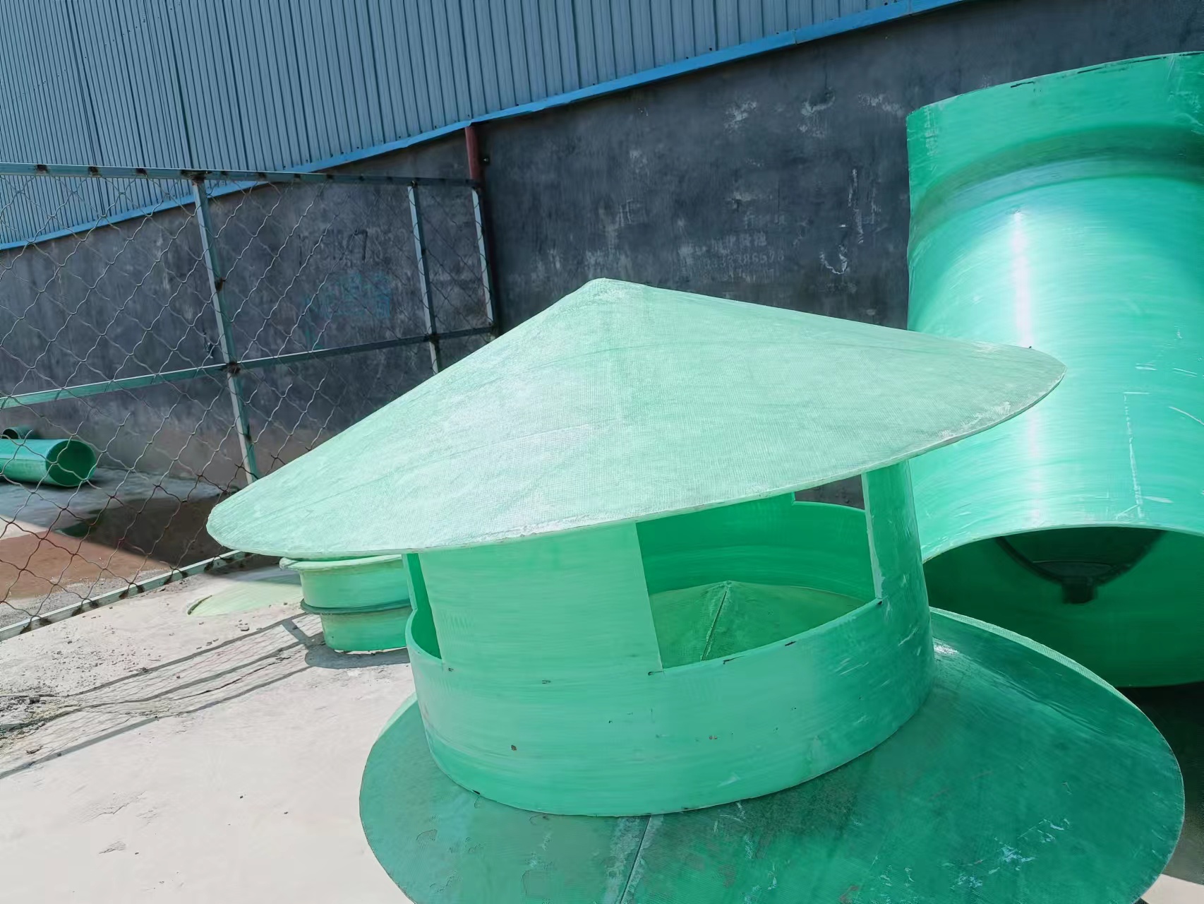 玻璃钢挡雨帽凭借耐腐、轻质、抗老化的特性,核心适配需防雨防尘且环境复杂的场景,具体如下:工业生产场景 1、化工行业:反应釜顶部开口、腐蚀性介质储罐管口、化工管道末端,抵御酸碱腐蚀与水汽侵蚀。 2、电力行业:脱硫脱硝系统设备管口、电缆沟顶部开口、变电站通风管道出口,兼顾防雨与耐候。 3、冶金 / 矿山行业:尾矿输送管道顶端、冶炼设备排气口、矿山通风井顶部,耐受粉尘与潮湿环境。 市政与环保场景 1、污水处理厂:污水池检修口、曝气池顶部开口、渗滤液处理管道末端,防止雨水混入与杂物进入。 2、市政管网:雨水井、污水井顶部、给排水管道预留管口,避免泥沙堵塞与雨水倒灌。 3、垃圾处理设施:垃圾填埋场排气井顶部、垃圾中转站设备开口,抵御腐臭气体与潮湿腐蚀。 基建与特殊场景 1、建筑基建:楼顶通风管道出口、地下室排气口、消防管道预留管口,适配建筑户外长期使用。 2、沿海 / 盐碱地场景:海洋平台设备管口、沿海市政设施开口、盐碱地管道顶端,抵御高盐雾与腐蚀。 3、农业 / 园区场景:农业灌溉管道末端、园区排水管网开口、沼气池顶部排气口,耐候且易维。